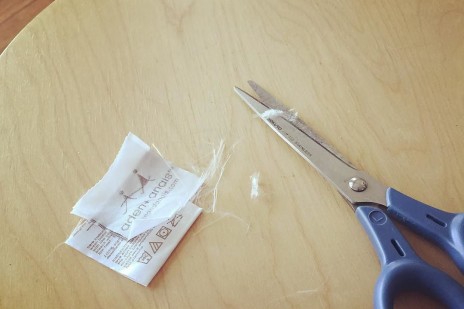 aden+anaisのタグはおっきい。赤ちゃん用のものって、スーって糸引くとタグが取れれば便利なのになー。#life #adenandan...