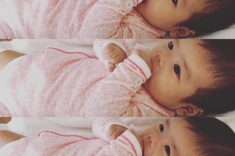 おっぱいいただきまーす、の顔。朝はごきげん。#2month #baby #life...