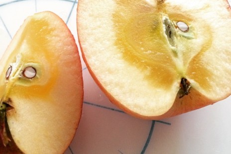 近所の八百屋のお兄さんに勧められて買ったりんご、切ったらすごい蜜でびっくりした!!! #life...