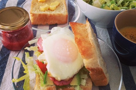 ハム・レタス・トマト・アボカド・タマゴサンド、グルマンマルセパン、自家製イチゴジャム、レタスとりんごのヨーグルトサラダ、コーンポタージュス...