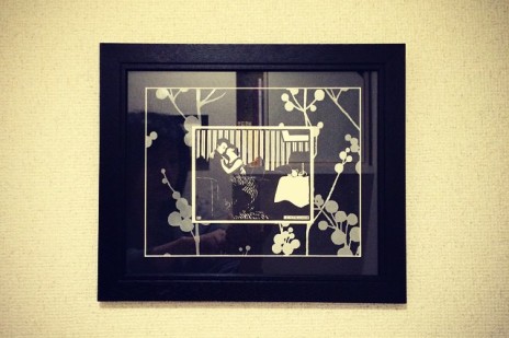 ヴァロットンの版画も余った壁紙を重ねてみました。 #life...